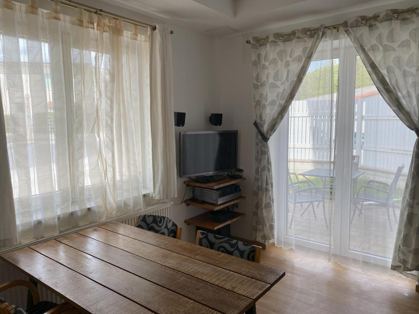 The apartment is located on the ground floor and is equipped with 1 bedroom, a flat-screen TV with satellite channels and a fully equipped kitchen that provides guests with a microwave, a fridge, a washing machine, a stovetop and kitchenware. Towels and bed linen are provided in the apartment. For added privacy, the accommodation has a private entrance and soundproofing.